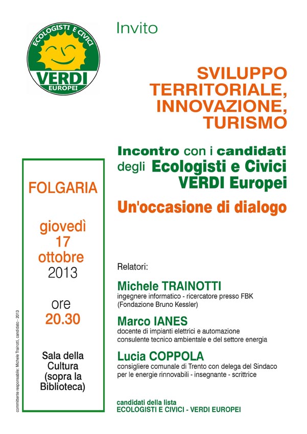 presso la sede dei VerdI a Gardolo, via Aeroporto 73/2